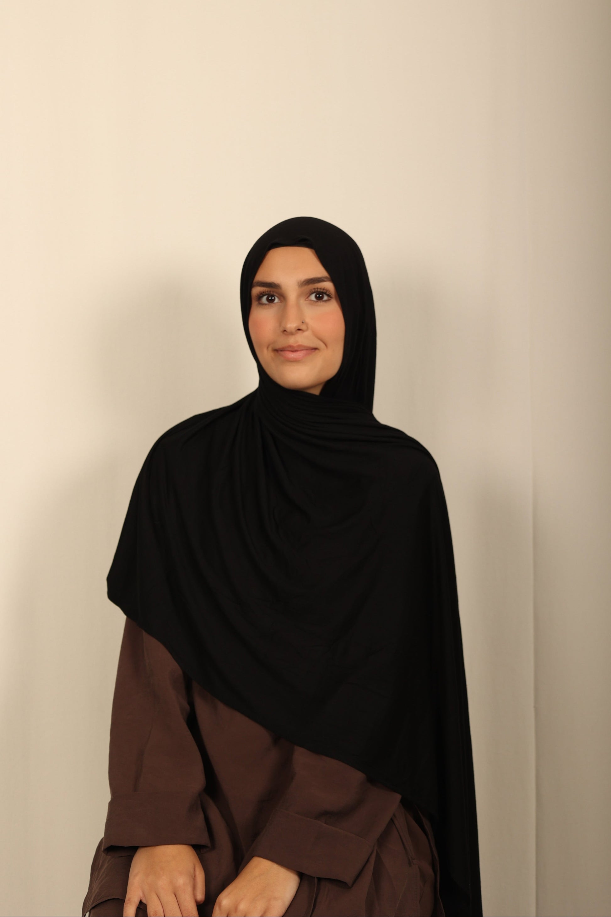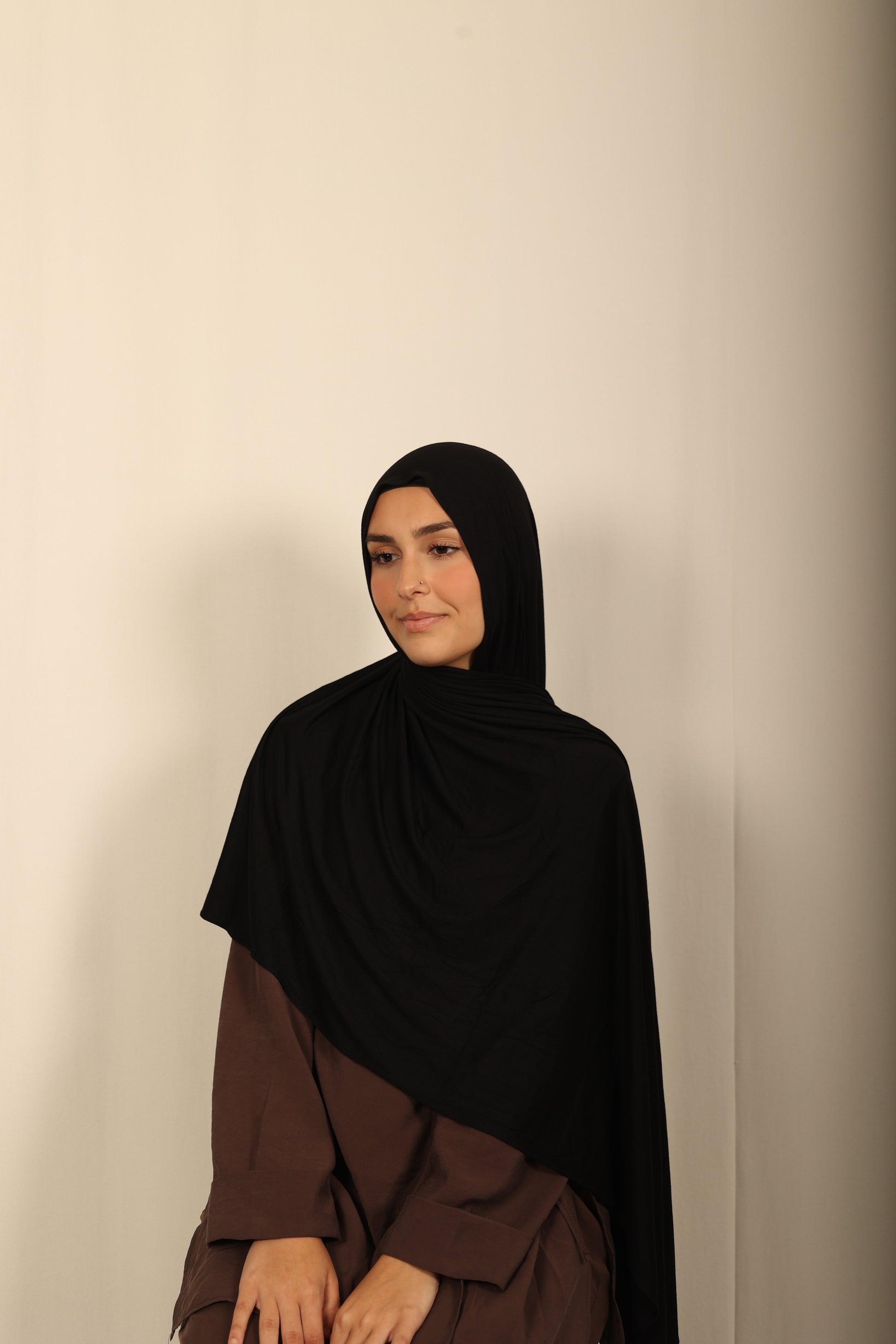 Deep as a starlit sky, this rich black embodies timeless elegance and quiet strength. Bold yet serene, it's your go-to for effortless sophistication. Crafted with our signature jersey fabric that is soft, stretchy, and comfortable for all-day wear